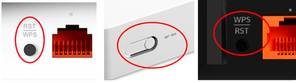 Only by one click on the RST/WPS button STEP-1: Press and hold the RST/WPS button for about 10 seconds, until the CPU led blink quickly. STEP-2: After nearly 30 seconds, resetting is finished. |