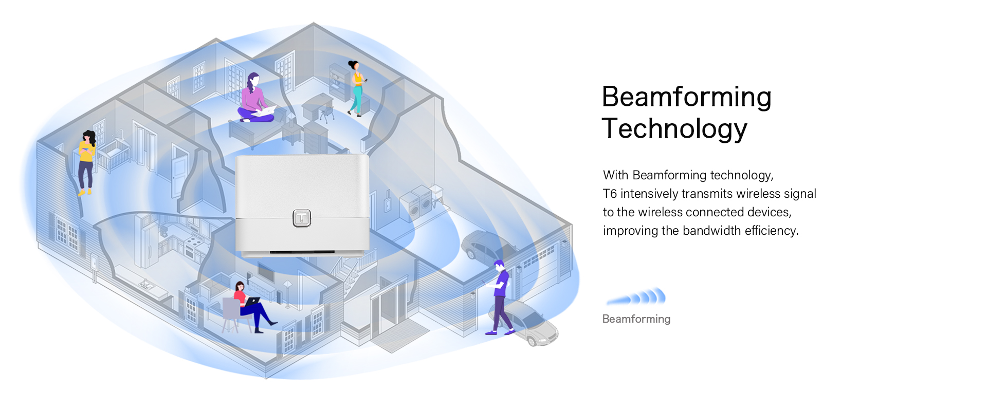 Intelligent Beamforming helps to transmit the wireless signal intensively and improve the bandwidth efficiency.
