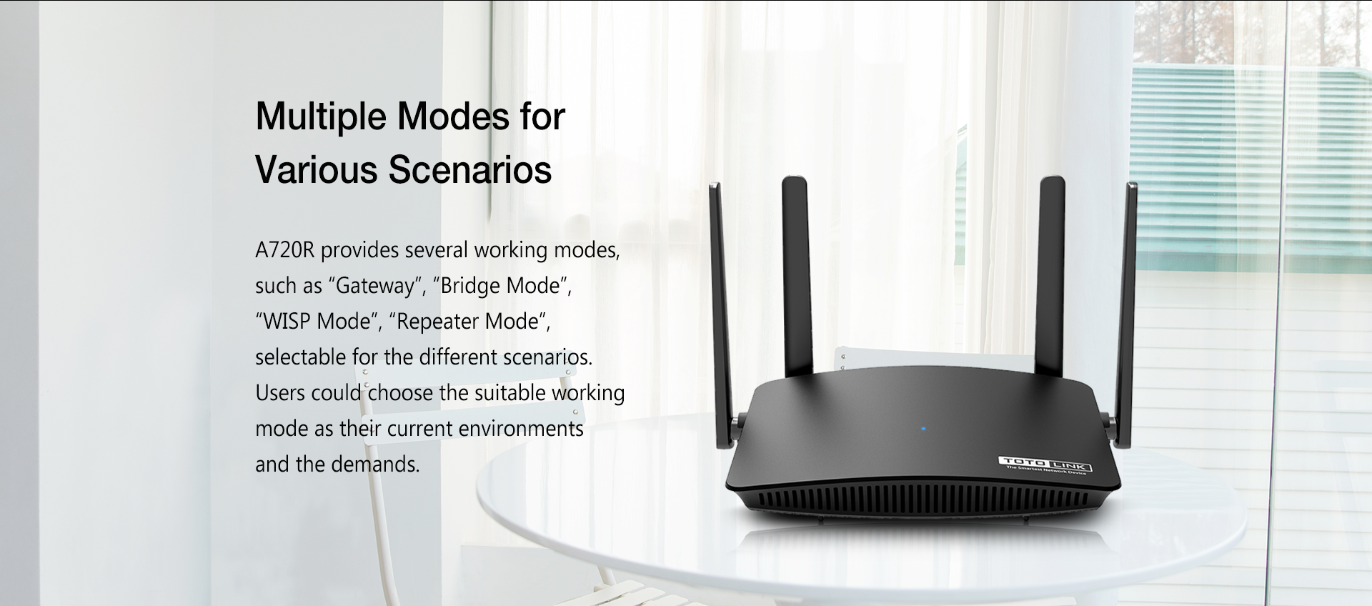 Equipped with 4 pieces omni-directional antennas, A720R delivers Wi-Fi speed up to 1167Mbps.