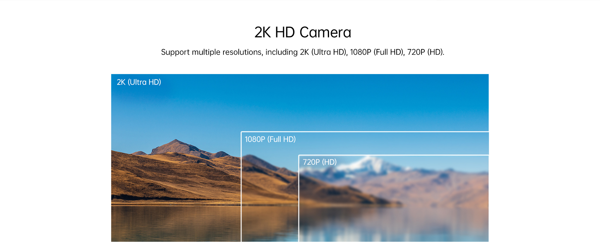 HD color CMOS, 4 megapixel, UHD 2K@30fps resolution.